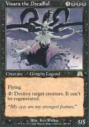 DESCRIZIONE: Volare ; {TAP}: Distruggi una creatura bersaglio. Non può essere rigenerata. RARITA': COSTO: 3NNN "ENGLISH: Visara the Dreadful