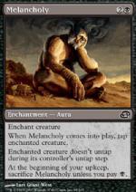DESCRIZIONE: Incanta creatura ; Quando la Mestizia entra nel campo di battaglia, TAPpa la creatura incantata. ; La creatura incantata non STAPpa durante lo STAP del proprio controllore. ; All'inizio del tuo mantenimento, sacrifica la Mestizia a meno che non paghi {N}. RARITA': COSTO: 2N "ENGLISH: Melancholy